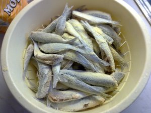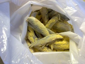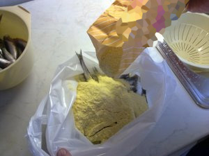 Natresite pripravljene sardelce v vrečko z pšečnično moko ... |
