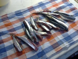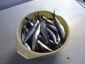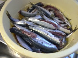 Ker imam rada sveže ribe, sem šla kupit 1,5 kg svežih in očiščenih sardelc kar na mestno tržnico. |
