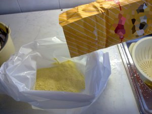 Način z vrečko je vedno dober, saj se pšenična moka vedno dobro prime. |