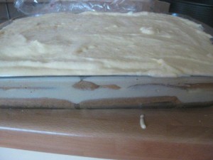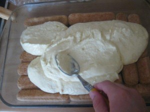 Nato pa po njemu namažite polovico mascarponejeve mase. |