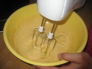 Sedaj dobro premešajte z mešalnikom na visoki hitrosti, da dobite gladko penasto zmes svetlo rumene barve, kot vidite na sliki. |