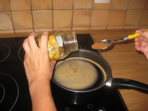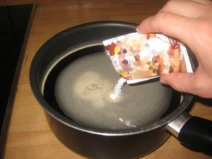 Zavrite približno pol litra ali za tri skodelice vode. Ko zavre dodajte notri 8 žličk kave.