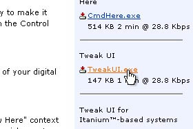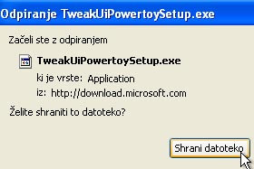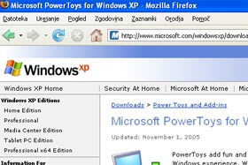 Kliknite tukaj, da boste odprli spletno stran Microsoft PowerToys for WindowsXP.