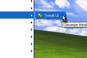 Kliknite na Start, Vsi programi, Powertoys for Windows XP in izberite Tweak UI.