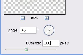 V polje Angle vpišite 45, v Distance 100 pixels in potrdite na gumb OK. |