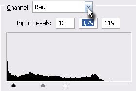 V Channel izberite Red in prestavite drsnike (črn, siv in bel) nekako tako kot sem jih jaz.