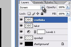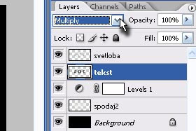 Določite sedaj zgornji layer (jaz sem ga prej imenoval svetloba).