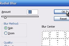 Kliknite na Filter, Blur in izberite Radial Blur...