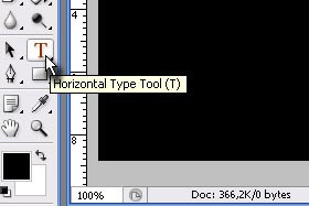 Pobarvajte dokument s črno barvo, potem pa izberite orodje Horizontal Type Tool (bližnjica je tipka T). |