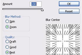 V polje Amount vpišite 100, Blur method izberite Zoom in spodaj Quality Best. Potrdite spremembe še na OK. |