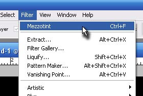 Ponovite postopek trikrat ali štirikrat. To najhitrje storite tako, da kliknete na Filter in izberite Mezzotint (oziroma pritisnite tipki CTRL + F). |