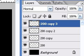 Pritisnite tipki CTRL + J trikrat, da boste dobili 4 iste layer-je.