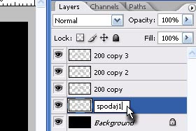 Kliknite dvakrat na tekst spodnjega layer-ja in ga preimenujte v spodaj1.