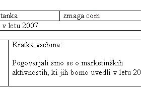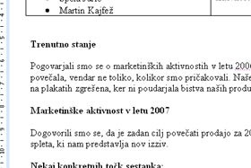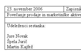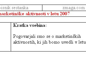 V celico spodaj vpišite naslov teme sestanka (moj primer: Povečanje prodaje in marketinške aktvinosti v letu 2007).