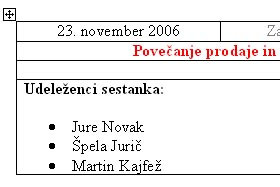 Udeleženci sestanka odebelite, imena in priimke pa označite (bullet, alineje...).