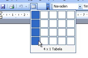 Kliknite na ikono za vstavljanje tabel in izberite 4 x 1 Tabela.