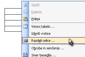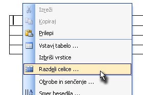 Kliknite v njo z desnim miškinim gumbom in izberite Razdeli celice ... |