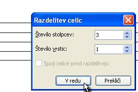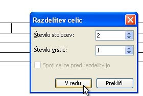 V polje število stoplpcev vpišite sedaj 2 in število vrstic pustite 1.