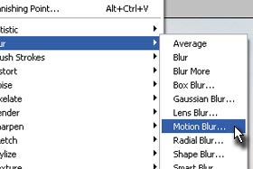Kliknite sedaj na Filter, Blur in izberite Motion Blur... |
