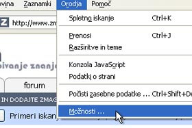 Kliknite na Orodja in izberite Možnosti ...