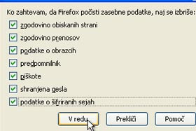 Zaprite Firefox in zbrisala se vam bo zgodovina obiskanih strani, predpomnilnik, shranjena gesla...
