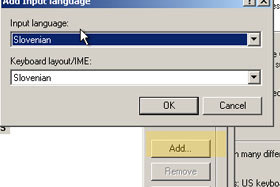 V novem oknu kliknite na gumb Add..., izberite v zgornjem zavihku Slovenian in potrdite spremembe na gumb OK.