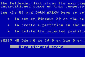 Ker v tej lekciji še nimamo nastavljenih particij, bomo ustvarili novo. Pritisnite tipko C. |