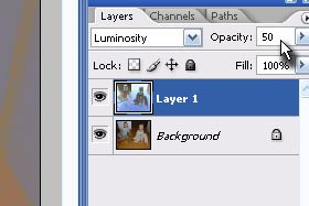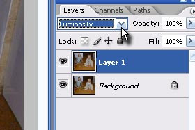 Sedaj dupliciranemu layerju preko izbrinika pri layerjih določite Luminosity.