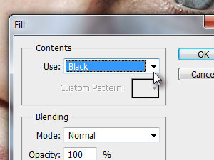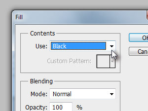 ![]() Kliknite zgoraj na Edit in izberite Fill... V novem oknu Use preko izbirnika določite Black in kliknite na gumb OK.