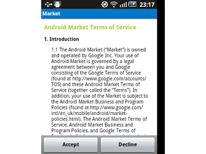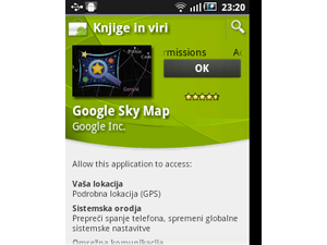 Odpre se vam še okno, kjer vas Google seznani s pogoji uporabe aplikacije Market.