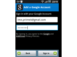 V kolikor pa že uporabljate Gmail elektronski naslov, pa lahko kliknete možnost za vpis računa - gumb Sign in. Ker jaz račun že imam, sem izbral drugo možnost. |