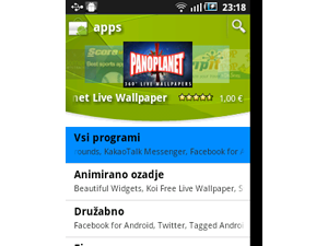 Prikažejo se kategorije, v katerih se nahajajo aplikacije.