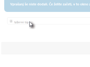 Izberite tip vprašanja in ga povlecite, kot prikazuje slika. |