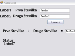 Ustvarite aplikacijo, kot je prikazana na sliki. Imena tekstov in textbox-ov so prav tako zapisana v sliki.