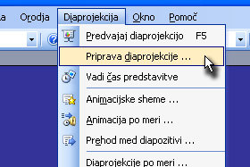 Kliknite na Diaprojekcija in izberite Priprava diaprojekcije ...