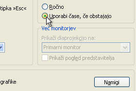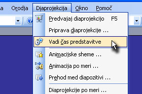 Kliknite spet na Diaprojekcija in tokrat izberite Vadi čas predstavive.