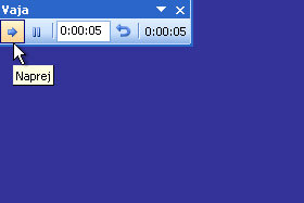 Ko bo preteklo dovolj časa za izbran diapozitiv, kliknite na ikono Naprej. Za vsako diaprojekcijo morate seveda prej vedeti, koliko časa boste potrebovali, da jo boste obrazložili. |