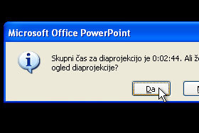 Ko boste prišli do konca, vas bo PowerPoint vprašal, če želite shraniti čas, ki ste ga ravnkar nastavili.