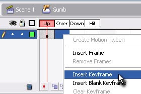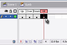 V polju Timeline se vam prikažejo štiri možnosti (Up, Over, Down in Hit). Kliknite na kvadratek pod tekstom Over. |