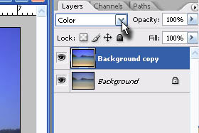 Sedaj pa dupliciranemu layerju preko izbirnika nastavite Color.