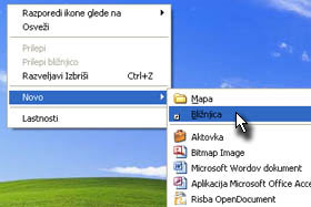 Kliknite na namizje z desnim miškinim gumbom in izberite Bližnjica.