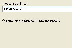 Vpišite še ime bližnjice in potrdite na gumb Dokončaj.