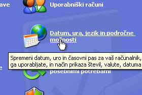 Kliknite na Datum, ura, jezik in področne možnosti. Če imate v nadzorni plošči nastavljen klasičen pogled, kliknite na ikono Področne in jezikovne možnosti ter preskočite lekcijo 3. |
