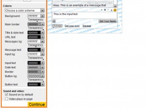 Odpremo spletno stran Chatango. V kvadratu levo nastavimo lastnosti.