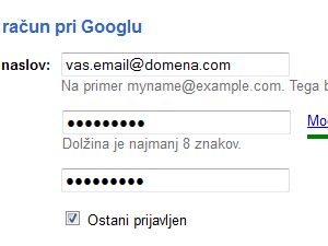 Izpolnite potrebne podatke, da povežete vaš račun z Googlom.