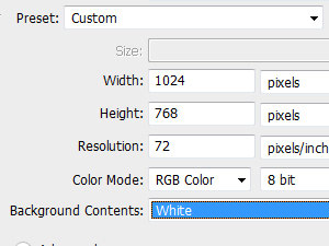 Jaz sem izbral dimenzije 1024 x 768 pik in belo ozadje.