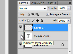 Kliknite na ikono poleg tekstovnega layerja, ki predstavlja vidljivost (glej sliko).