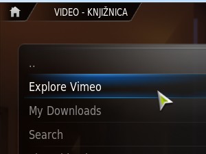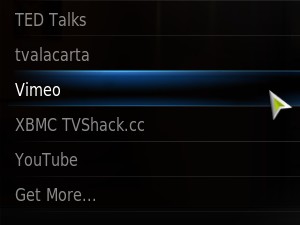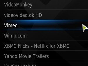 Znotraj razširitve lahko najdemo več kategorij, ki nam sedaj omogočajo, da znotraj XBMC gledamo vsebine direktno iz internetne strani vimeo.com.