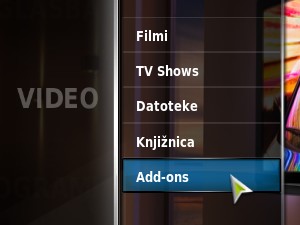 Postavimo se na zavihek VIDEO ter pritisnemo tipko za desno ter v podmeniju izberemo Add-ons. |