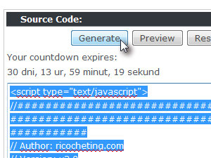 Kliknite tukaj, da odprete spletno stran, kjer se nahaja generator kode za odštevalnik časa.